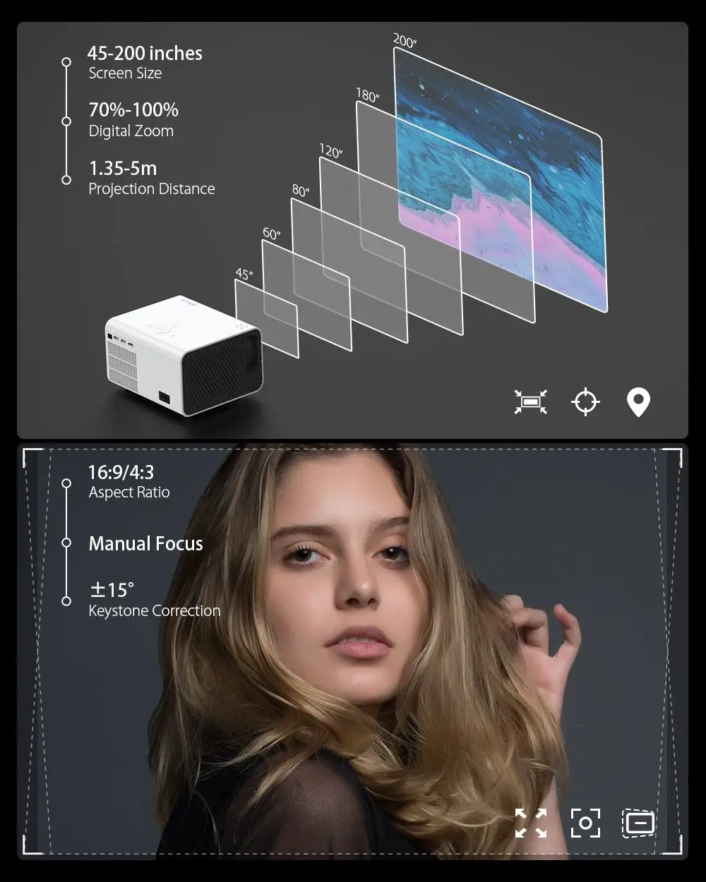 ※ 1080P Full HD images with 6000 lumens high brightness,making picture more clearer even in day and night.