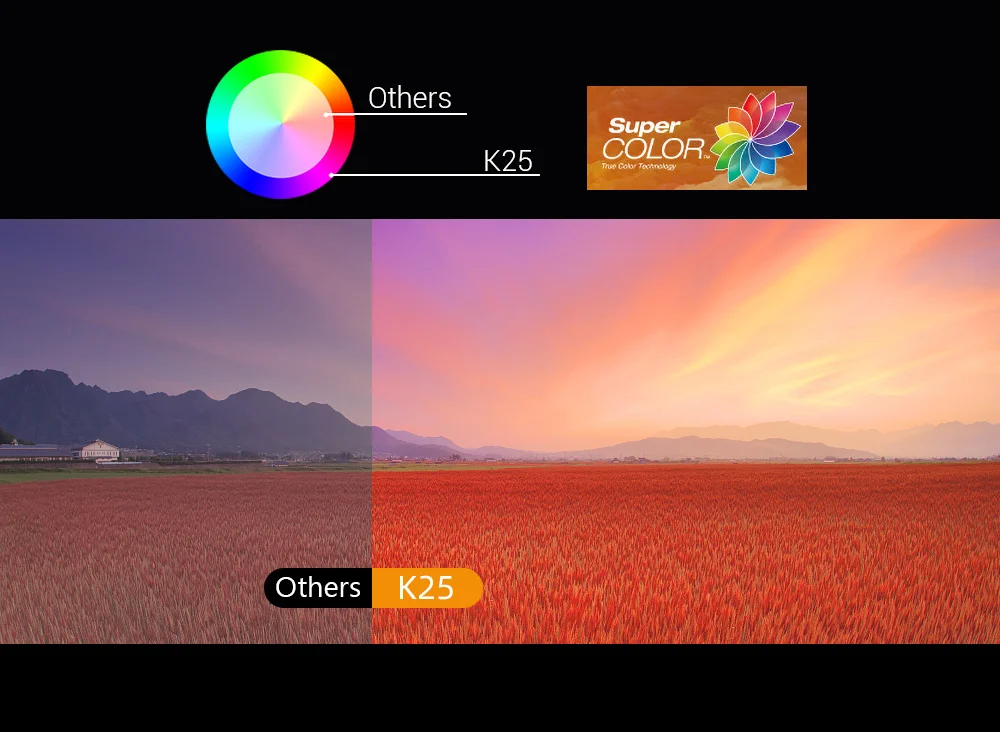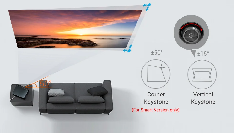 ● Keystone Correction: Vertical: +/-15deg,K25 Smart Version support Corner keystone correction