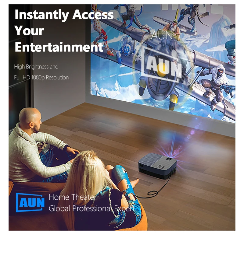 AUN Z5S Has 1920x1080P full HD resolution. it delivers stunning detail, vivid color that transport you from home to the local cineplex.