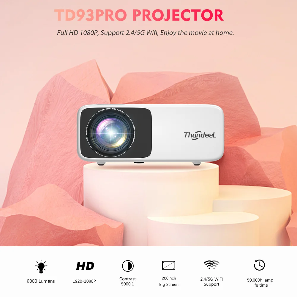 ThundeaL Full HD Projector 1080P 2K 4K Video Portable Projector TD93 Pro Mini WiFi Android LED Home Theater Cinema TD93W Beamer