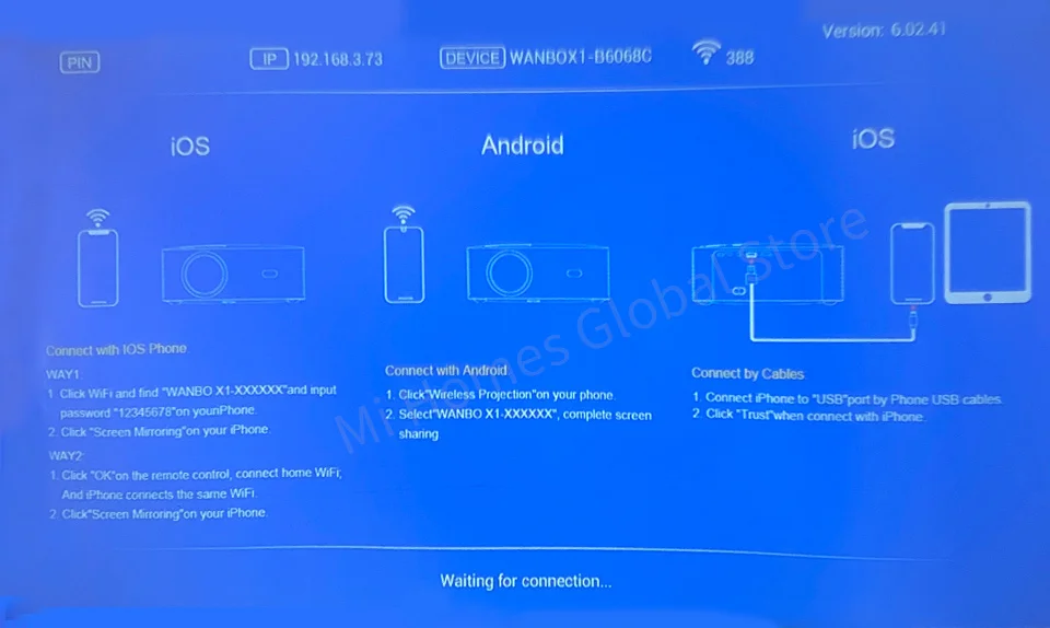 Wireless Projection ( IOS / Android )The mobile phone and the projector are in the same network envi -ronment , open the movie and click the TV icon to cast the screen