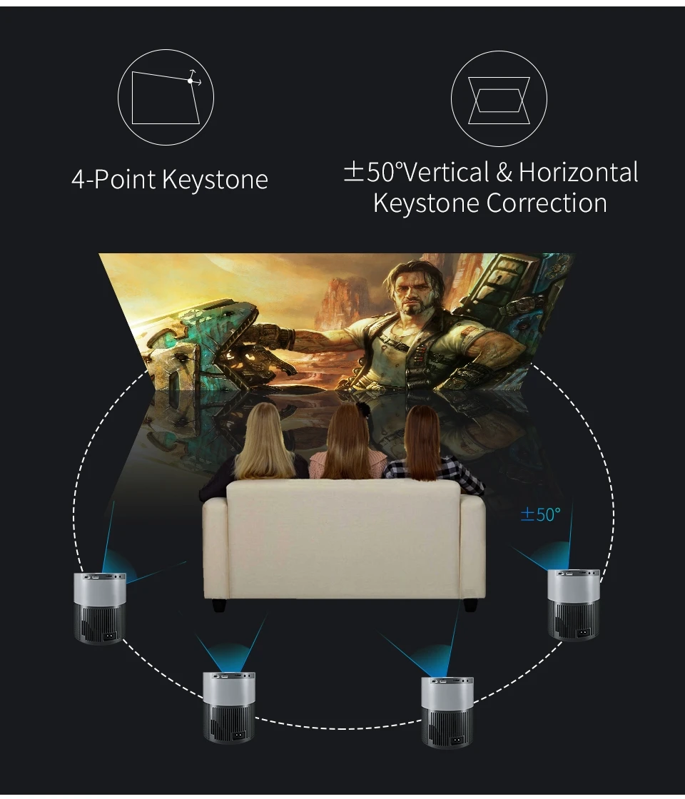 ±50 degree Vertical and Horizontal Keystone Correction(For E9S Android version)
